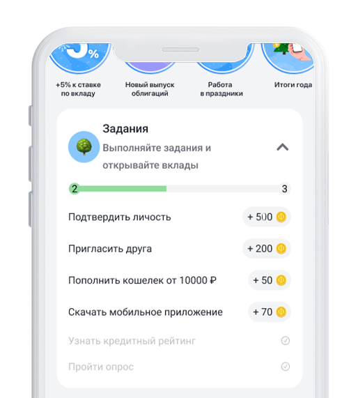 Создание виджета и страницы с заданиями, за выполнение которых пользователь получает награды. Задания представляются в виде карточек, на которых отображается описание и прогресс